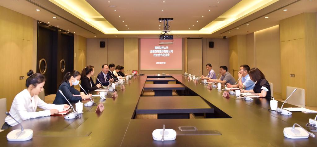 交流会上,乔均副校长对金陵饭店股份有限公司多年来给予学校事业发展的关心和支持表示衷心感谢,并介绍了学校的发展历史、院系设置、专业特色和校企合作等情况。他表示,金陵饭店股份有限公司是中国旅游业改革开放的窗口,也是中国服务业的品质标杆,南财大的旅游管理专业在全省也名列前茅。近年来公司吸收了我校一批优秀人才,公司各企业高层管理人员也成为南财大的兼职教授和硕士生导师。希望双方今后在实习就业、产学研课题研究、定制化人才培养等方面开展更多形式的交流与合作,实现校企资源的紧密结合和优化配置,以达到相互促进、协同育人,建立“产学研一体化”实践平台,打造产业与教学深度合作的样板典范,发挥行业的示范引领作用,为国企新时期产业结构升级、连锁化经营和高质量发展培养高素质、高技能的应用型人才。
