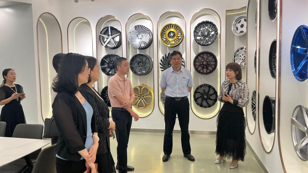 座谈会前,张海霞董事长、张霆辉董事长陪同温潘亚副书记一行走访了两家公司的轮毂展厅和“应急产业与公共安全”智能展厅。