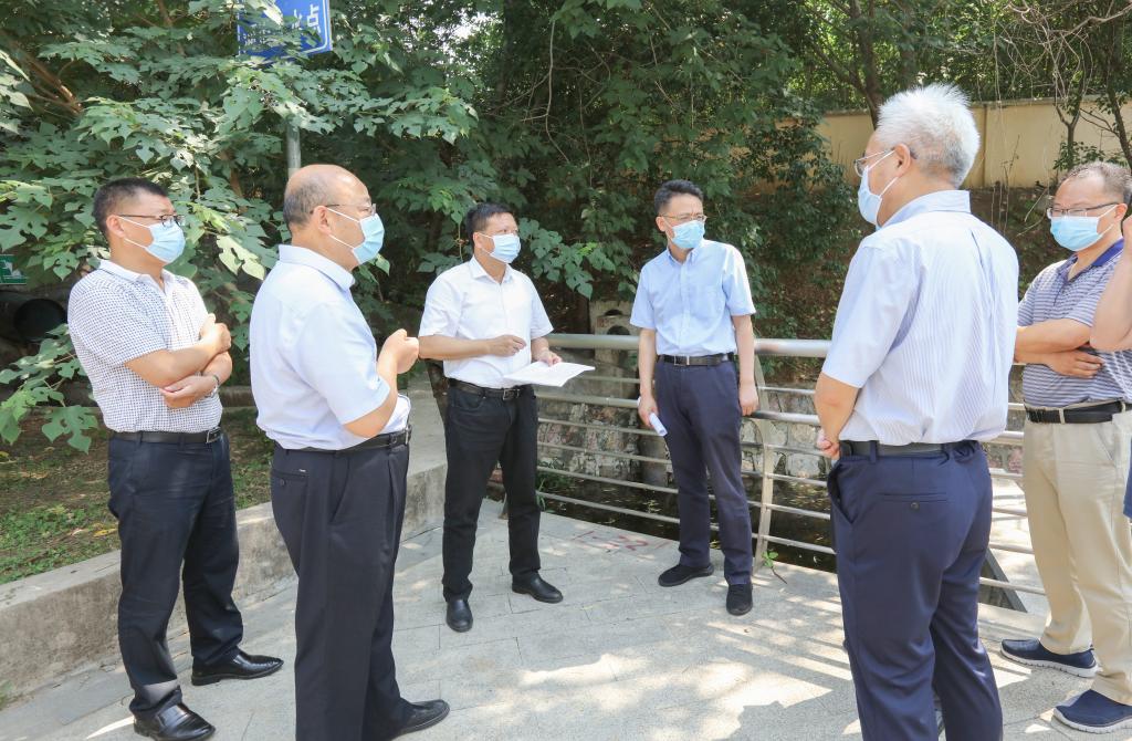 6月16日,仙林大学城管委会主任袁传军一行来我校检查雨水排口现状,指导雨污分流改造工作。校党委书记张利民,党委常委、副校长张为付,党委办公室、校长办公室,后勤基建处相关负责同志陪同检查。