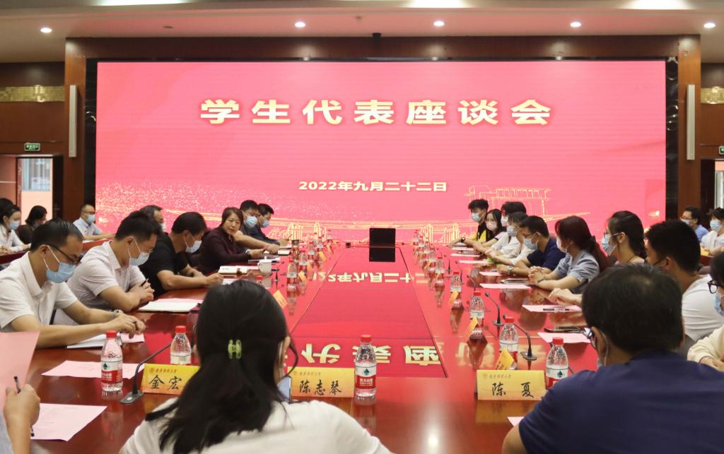 为了解疫情防控期间在校学生的思想动态和学习生活情况,做好教育管理与服务工作,9月22日下午,我校在仙林校区工科楼二楼会议室召开新学年第一次学生代表座谈会。党委常委、副校长李群出席座谈会,党校办、党委学生工作部、党委研究生工作部、校团委、保卫处、教务处、后勤基建处、信息化建设管理处及图书馆等相关职能部门负责人以及来自各学院的学生代表参加座谈会。会议由党委学生工作部部长韩力争主持。