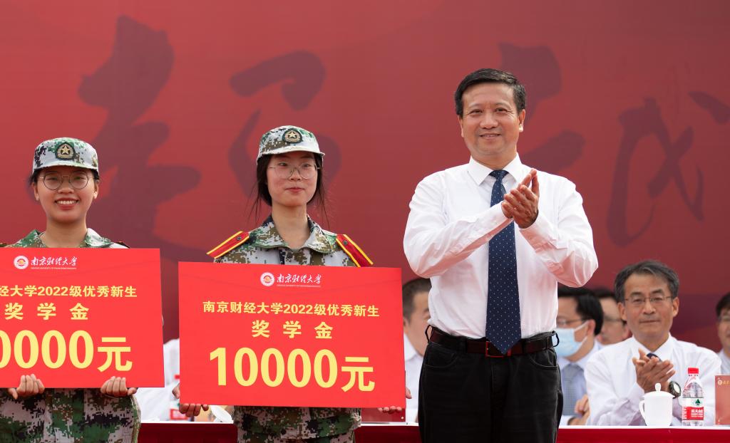 党委常委、副校长李群宣读了《关于颁发南京财经大学2022年本科新生奖学金的决定》,刘少卿等20名同学获“本科新生奖学金”。张利民书记为本科新生奖学金获奖者颁奖。