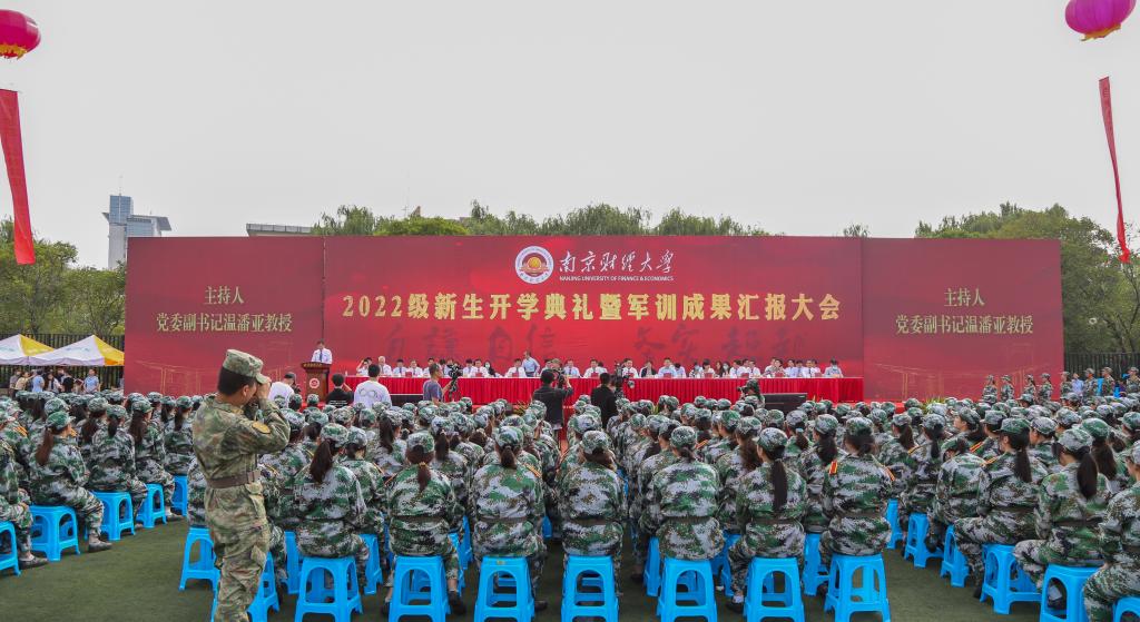 9月30日上午,我校2022级新生开学典礼暨军训成果汇报大会在仙林校区西苑体育场举行。校党委书记张利民、校长程永波等全体在宁校领导及中国人民解放军临汾旅副政委周长青出席开学典礼暨军训成果汇报大会,有关职能部门和学院主要负责人、教师代表、我校5943名2022级新生参加了开学典礼暨军训成果汇报大会。开学典礼暨军训成果汇报大会由校党委副书记(正校级)温潘亚主持。