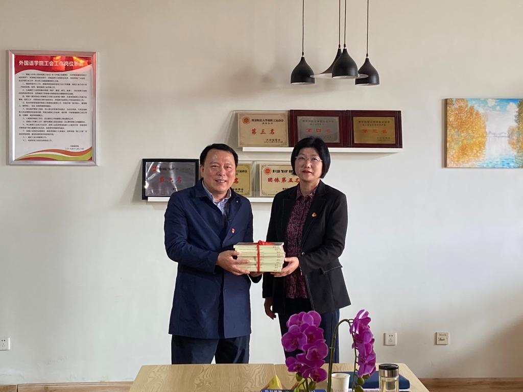 邱伟芬副校长向外国语学院赠送《习近平总书记论教育重要论述讲义》(英文版)