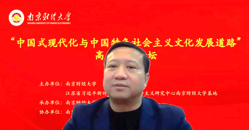 为深入学习贯彻党的二十大精神,牢牢把握习近平新时代中国特色社会主义思想的世界观和方法论,进一步推进中国式现代化与中国特色社会主义文化发展道路的研究与发展,12月26日,由南京财经大学、江苏省习近平新时代中国特色社会主义思想研究中心南京财经大学基地主办,南京财经大学马克思主义学院承办,南京大学学报编辑部协办的“中国式现代化与中国特色社会主义文化发展道路”高层学术论坛以腾讯会议方式成功举办。来自清华大学、中国人民大学、中国社会科学院、江苏省社会科学院、江苏省委党校、南京大学、东南大学、南京理工大学、南京航空航天大学、南京师范大学、苏州大学、河海大学、扬州大学、南京财经大学等单位的60余名专家学者,《南京大学学报》《江海学刊》《江苏社会科学》等期刊主编以及我校马克思主义学院师生代表云聚一堂共襄盛会。论坛开幕式由校党委副书记(正校级)温潘亚教授主持。
