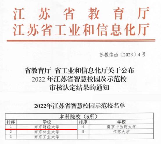 近日,省教育厅、省工业和信息化厅联合公布了2022年江苏省智慧校园及示范校审核认定结果,我校入围“2022年江苏省智慧校园示范校”名单,荣获全省教育信息化领域最高殊荣。