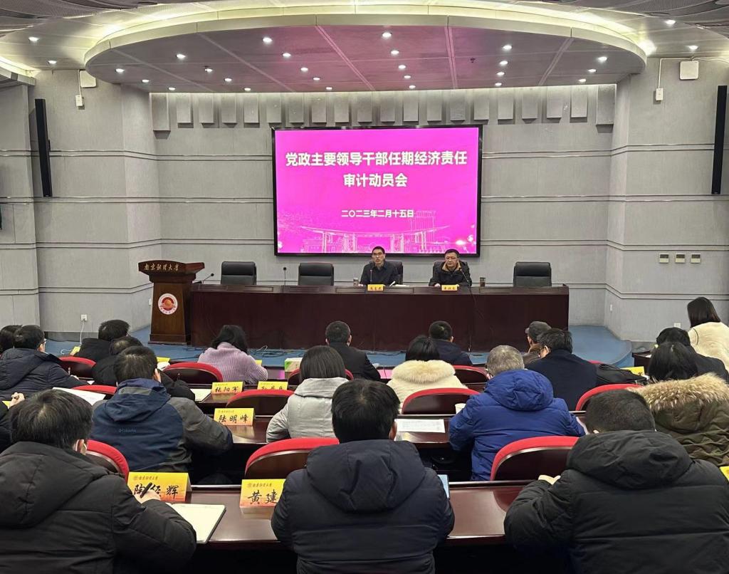 2月15日上午,我校在仙林校区行政楼二楼会议室召开学校党政主要领导干部接受任期经济责任审计工作动员会。正校级领导焦富民主持会议并讲话,全校各职能部门主要负责人、各二级学院党政主要负责人、资产经营公司主要负责人等参加会议。