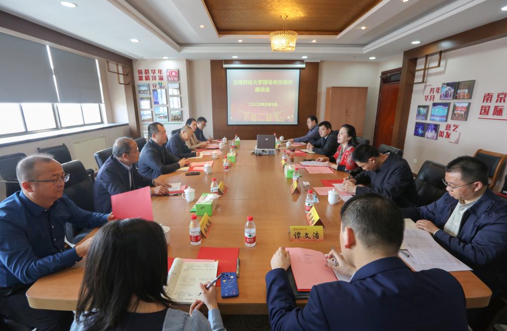 3月7日下午,云南财经大学党委委员、副校长余怒涛一行来我校调研交流,座谈会在仙林校区行政楼1406会议室举行。党委常委、副校长姚文韵出席并主持会议。研究生院院长殷华方,对外联络处处长陆明峰,学科建设办公室、高水平大学建设办公室副主任胡唐明,会计学院副院长沈永建及相关工作人员参加座谈会。