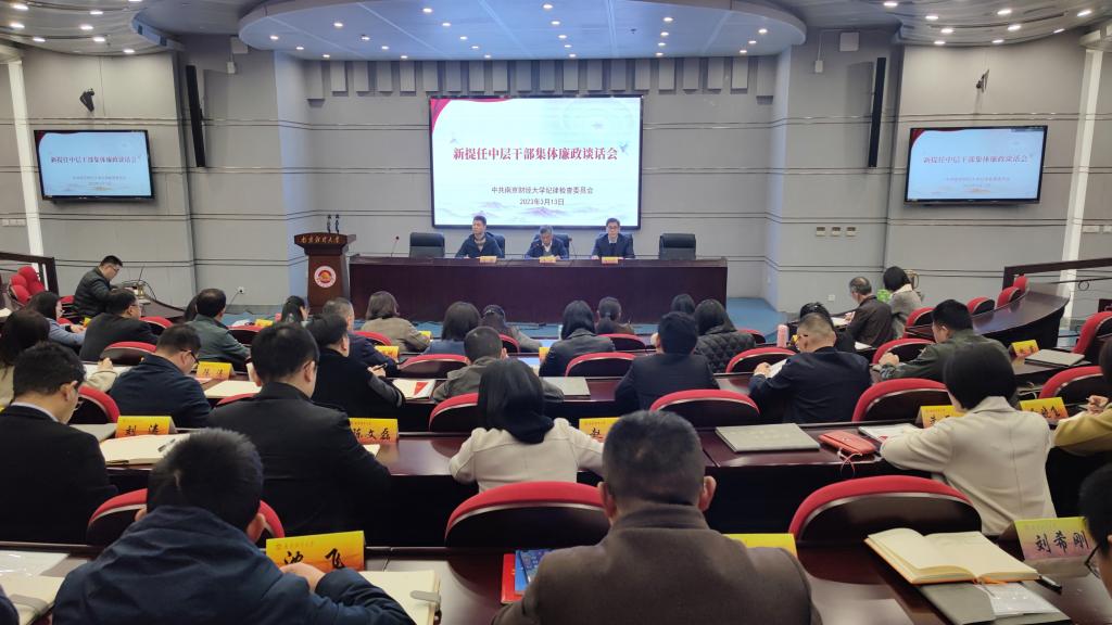 根据《中国共产党党内监督条例》有关规定,按照学校党委工作安排,3月13日下午,我校在仙林校区行政楼二楼报告厅召开新提任中层干部集体廉政谈话会议。党委常委、纪委书记、派驻监察专员李茜出席会议并作廉政谈话,党委组织部副部长王鑫,全体新提任中层干部参加会议。会议由校纪委副书记杜兴华主持。