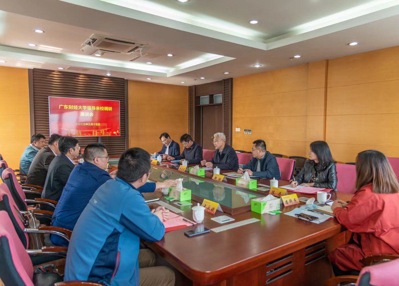 3月15日下午,广东财经大学党委副书记罗贤甲一行来我校调研交流,座谈会在仙林校区行政楼1101会议室举行。党委常委、副校长张为付出席并主持座谈会。党委办公室、校长办公室主任郑锷,对外联络处处长陆明峰,新闻学院党总支书记陈丹,档案馆馆长倪明,档案馆副馆长安艳杰及相关工作人员参加座谈会。