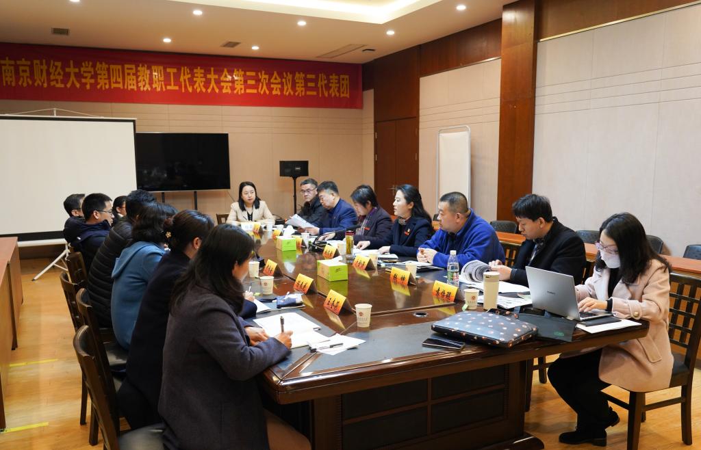 全体会议后,各代表团分别召开分组会议,就学校工作报告、财务工作报告、《南京财经大学章程(修正案)》、《南京财经大学绩效工资方案(草案)》进行深入讨论,提出意见和建议,对学校发展积极建言献策。随后,各代表团团长张阳军、周亚芳、韩力争、许文彪、高晓东、刘浩、万绪才、陆斌作了交流发言。