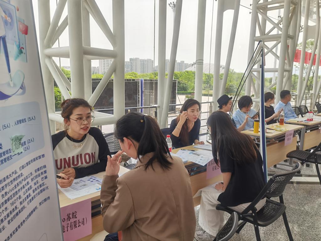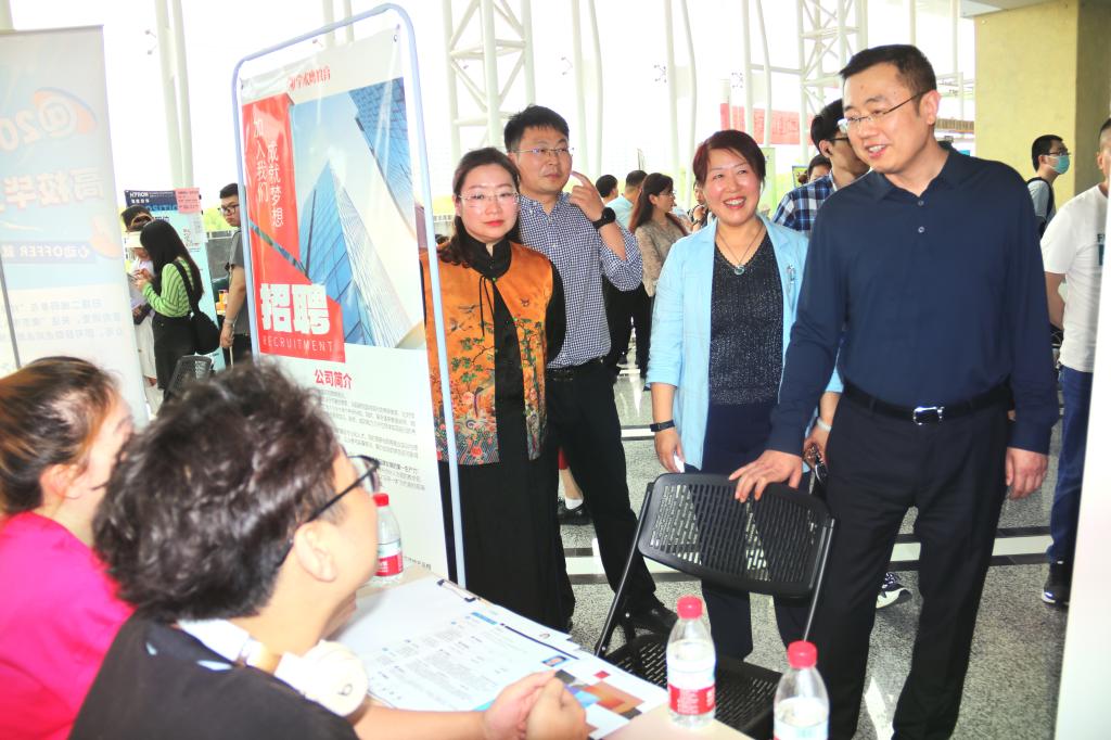 为深入学习贯彻党的二十大精神,抢抓春季促就业工作关键期,促进毕业生高质量就业,为用人单位与毕业生提供双向选择机会,4月18日下午,营销与物流管理学院、应用数学学院、信息工程学院、国际经贸学院、新闻学院在仙林校区大学生活动中心广场联合举办“双向奔赴,‘职’赢未来”2023春季攻坚招聘周专场招聘会。党委常委、副校长赵国栋深入招聘会现场,与参会企业代表深入交流,了解单位用人需求。党委学生工作部领导、相关学院党政领导和辅导员到场指导学生参加双选。我校2023届本科生、研究生毕业生参加招聘会,部分低年级学生到场观摩。