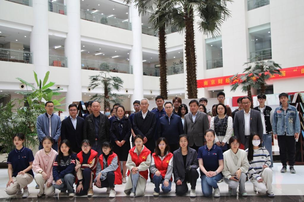 仪式最后,程永上馆长宣布“筑梦新时代 家乡焕新貌”江苏社会主义新方志成果专题展暨南京财经大学第十五届“读书节”开幕。全体与会领导与学生合影并共同观展。