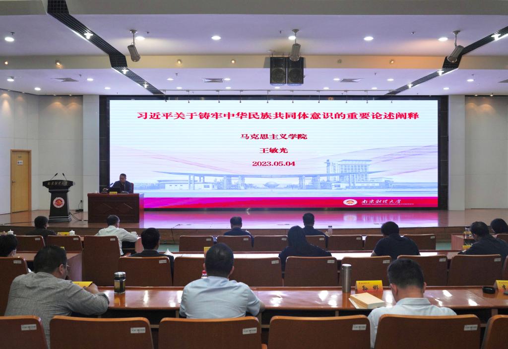 5月4日下午,我校在仙林校区图书馆报告厅开展学习贯彻习近平新时代中国特色社会主义思想主题教育读书班专题讲座。马克思主义学院王敏光教授围绕“习近平关于铸牢中华民族共同体意识的重要论述阐释”作报告。全体在校校领导、中层领导干部、基层党支部书记参加学习。讲座由党校常务副校长(正处职)、党委组织部副部长徐刚主持。