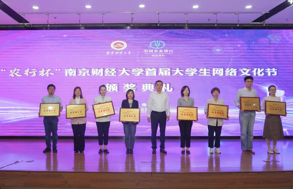 党委学生工作部部长、学生处处长韩力争宣读《“农行杯”南京财经大学首届大学生网络文化节表彰决定》。与会领导为获奖学生代表、优秀指导老师和获表彰学院颁奖。