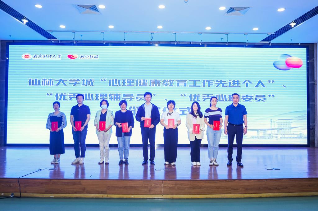 与会领导为各高校获奖师生代表颁奖,并共同启动2023年仙林大学城“5·25”心理健康活动月。
