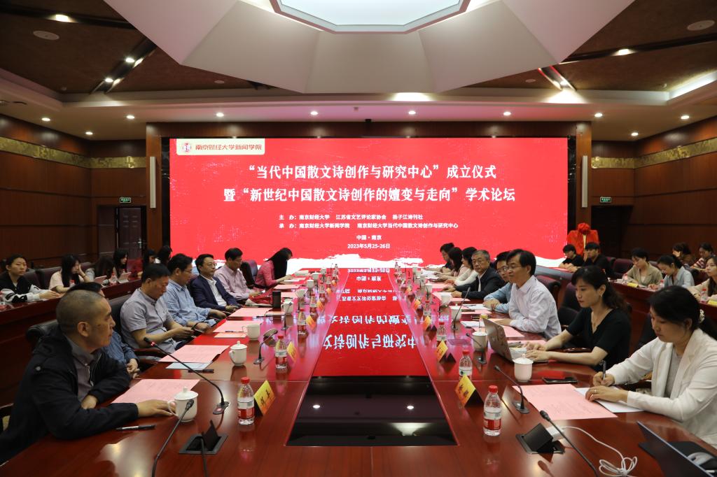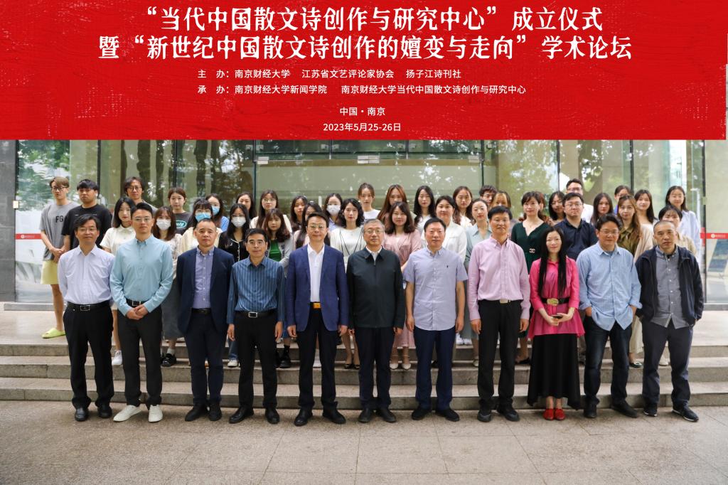 本次活动由我校与江苏省文艺评论家协会、扬子江诗刊社联合主办,新闻学院和当代中国散文诗创作与研究中心承办。北京师范大学教授张清华,江苏省文艺评论家协会副主席、南京师范大学教授、鲁迅文学奖获得者何平,江苏省作家协会副主席、扬子江诗刊主编胡弦,南京师范大学教授杨洪承,上海外国语大学教授杨四平,南京大学教授傅元峰以及散文诗人代表箫风、语伞等来自全国各地的专家、学者和散文诗人,我校科研处副处长张成,新闻学院党总支书记陈丹、院长宋祖华以及研究中心成员代表等参加成立仪式。