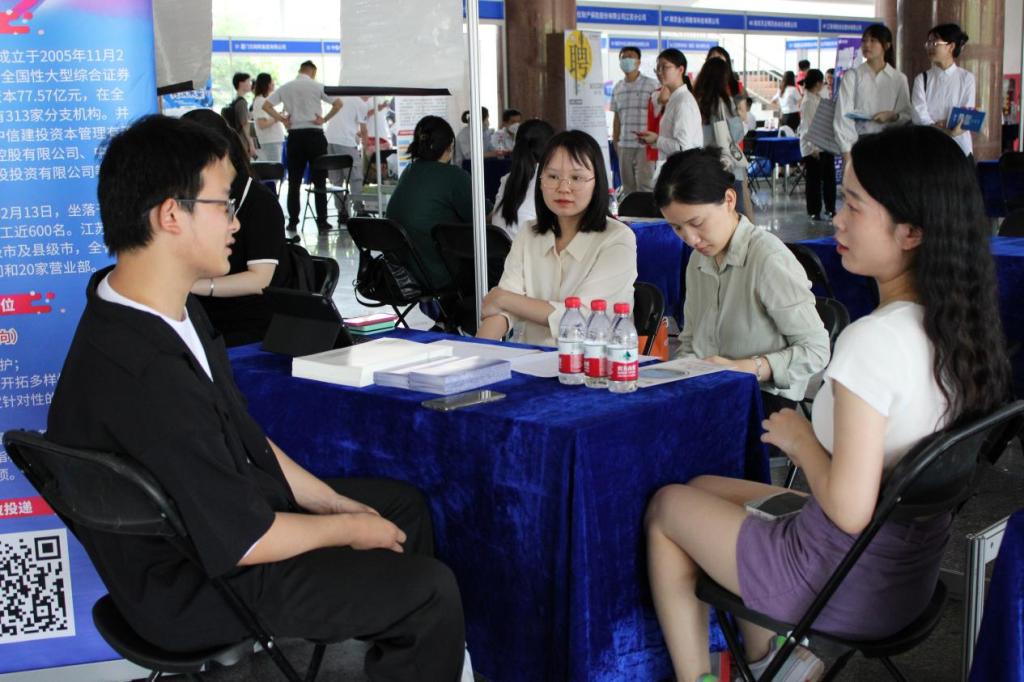 招聘会现场气氛热烈,我校毕业生与招聘单位工作人员积极交流,围绕岗位职责、发展前景等方面进行咨询,向心仪的招聘单位递交简历,寻找适合自己的岗位。2024届在校生也主动参与,提前了解行业需求、就业形势和就业要求,并积极应聘暑期实习岗位,有目的地做好个人生涯规划。