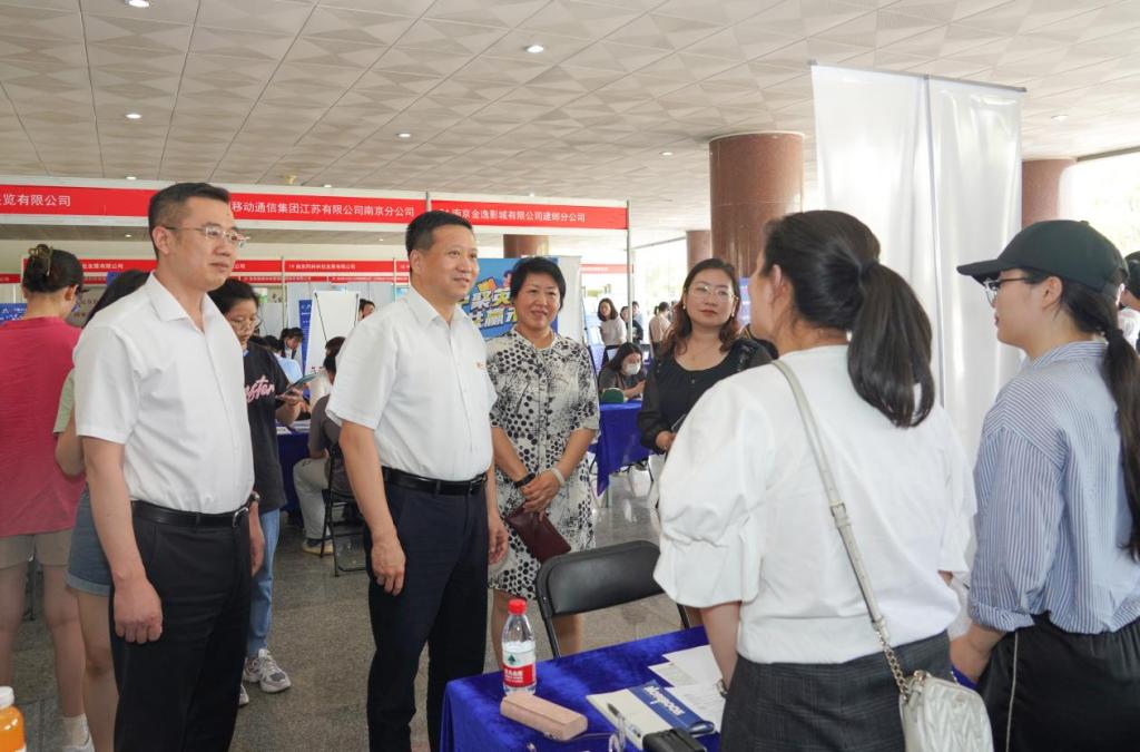 为贯彻落实党中央、国务院关于高校毕业生就业工作的决策部署,保障2023届毕业生高质量充分就业,同时满足广大在校生的实习需求,6月1日下午,我校在仙林校区博观楼大厅举办“百日冲刺促就业 踔厉奋发建新功”2023届毕业生就业暨2024届实习专场招聘会。校党委书记张利民,党委常委、副校长赵国栋出席招聘会。党委办公室、校长办公室主任郑锷,党委学生工作部部长、学生处处长韩力争,党委学生工作部副部长、学生处副处长李慕原和部分学院党政负责人参加招聘会。