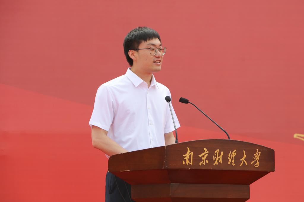 在校生代表、粮食和物资学院应用经济学专业2022级博士研究生张少博发言,向圆满完成学业的2023届全体毕业生送上衷心祝贺和真挚祝愿,并号召在校生谨记谆谆嘱托,以毕业生为榜样,不负青春年华,用汗水浇灌成功,用奋斗铸就辉煌。