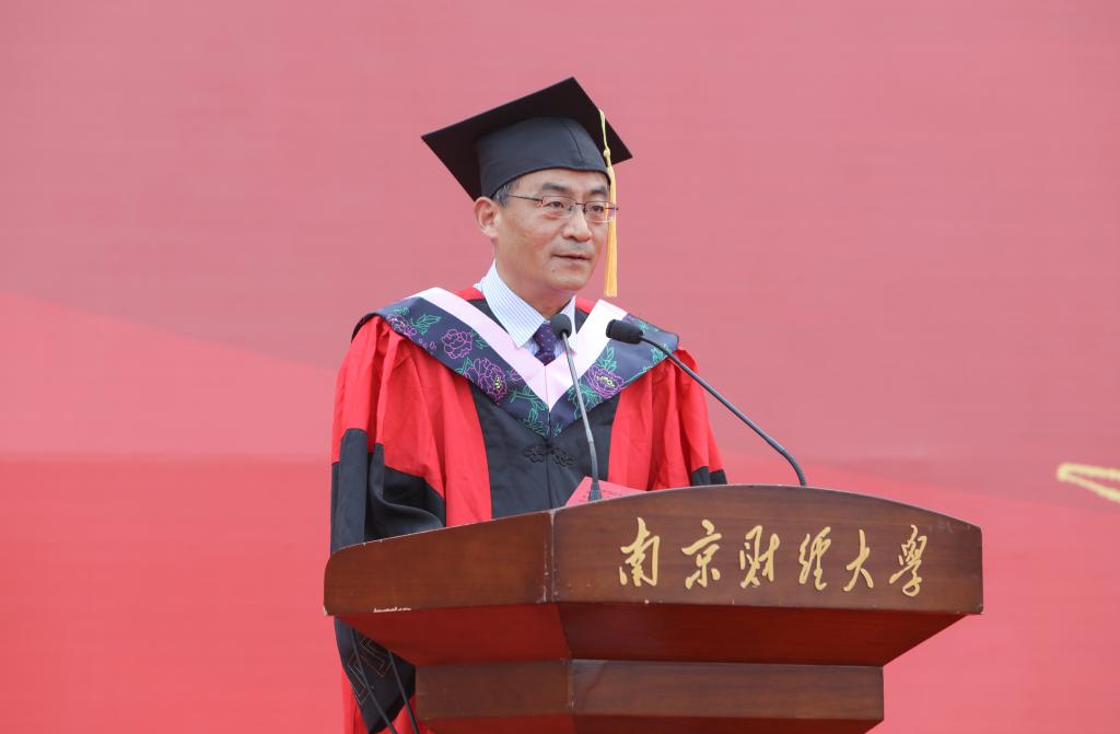 毕业典礼在雄壮的国歌声中拉开帷幕。程永波校长以“携手逐梦,共赴未来”为题致辞。他代表学校,向即将踏上人生新征程的全体本科生和研究生同学们,致以最热烈、最诚挚的祝贺。程永波校长回顾了2023届毕业生同学们丰富多彩的大学校园生活,分享了毕业生代表们在母校的青春故事,讲述了大家不负韶华、砥砺奋进,与母校共成长、同进步的心路历程。程永波校长在致辞中讲道:“你们在南财大的每一个日夜,汇成了你们梦想的样子,你们长大了,成熟了,我,为你们喝彩。”