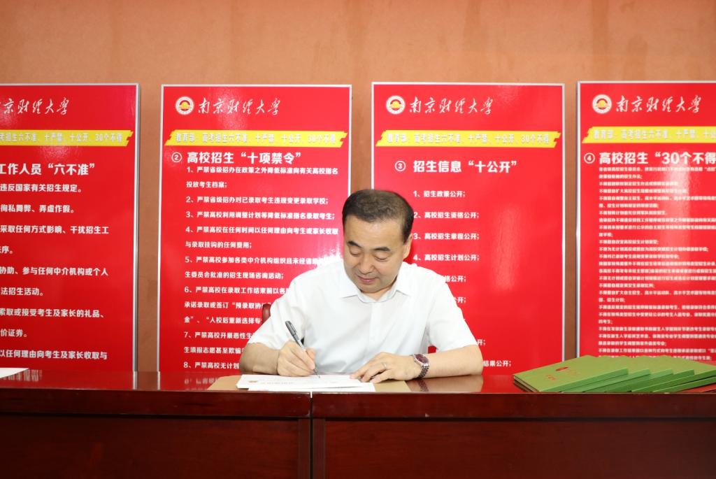 7月20日上午,在我校高考招生录取现场,校长程永波为首批录取的部分本科新生亲笔签发录取通知书,这也是程校长连续五年亲笔签发录取通知书。党委常委、副校长赵国栋,党校办、学生处、教务处等相关部门领导,以及招生工作全体成员参加签发仪式。