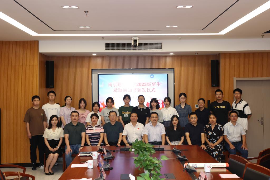张利民书记亲手将喜庆的录取通知书送到每一位新生的手中,并赠送了印有“逐梦南财”标识以及校徽的笔记本和钢笔。赵国栋副校长向省溧水高级中学赠送了喜报。