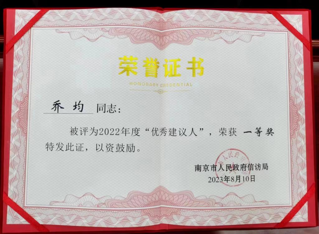 近日,我校原副校长、博士生导师、扬子江数字贸易研究院院长、江苏省生产力学会会长乔均教授撰写的题为《将南京港打造成为南京枢纽经济发展助推器的建议》专项报告获江苏省委副书记、省长许昆林肯定性批示。此篇建言在南京市人民政府信访局2022年度优秀建言评选中获一等奖,乔均教授获评“优秀建议人”。