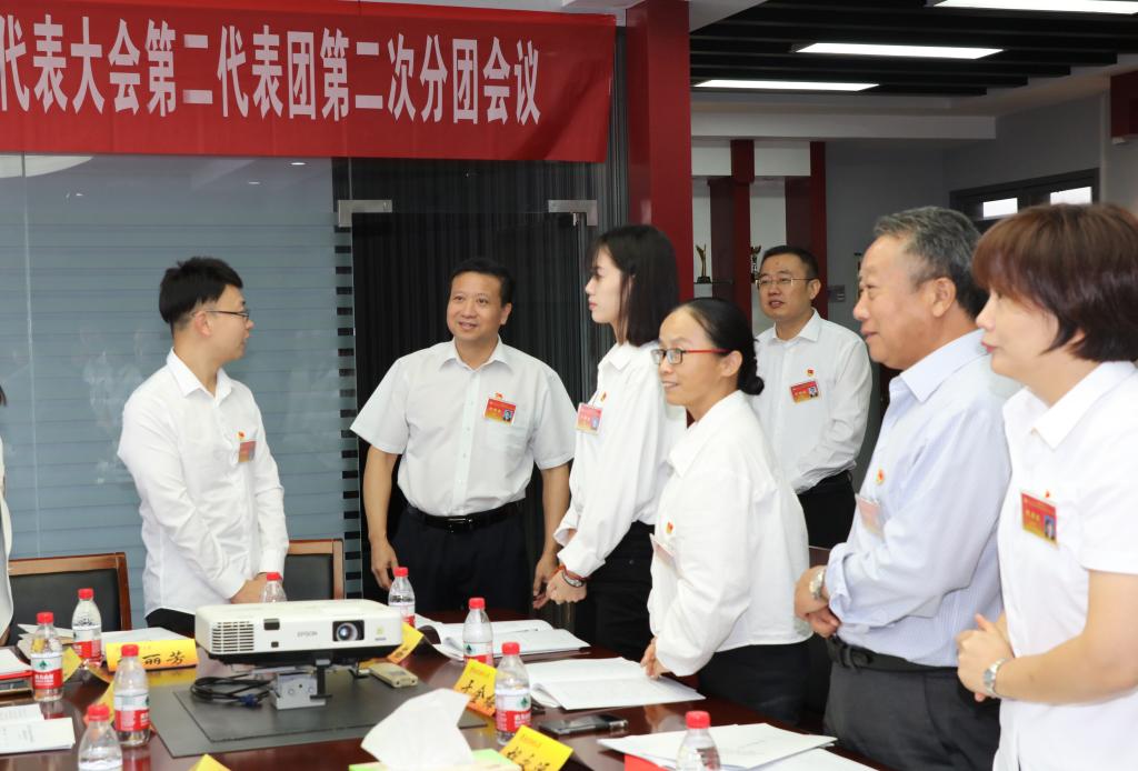 学校第四次党代会共设10个代表团,全体党代表以高度的政治责任感和使命感,认真履职尽责,积极讨论发言。现场气氛热烈。每到一处,张利民书记都对代表们表示衷心的感谢和诚挚的问候。