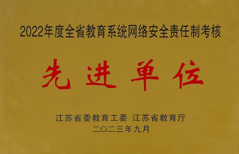 9月12日,江苏省教育系统网络安全宣传周校园日活动在扬州市新华中学正式启动。会上公布了2022年全省教育系统网络安全责任制考核先进单位名单,我校获“2022年全省教育系统网络安全责任制考核先进单位”称号。