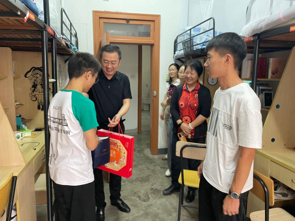 “你家是哪里的,对南财的生活适应吗?”“学校的餐厅饮食是否习惯?”“假期有什么活动计划?”……赵国栋副校长走进学生宿舍与学生亲切交谈,详细了解他们的学习、生活和假期安排等情况。赵国栋副校长告诉同学们,“学校是个大家庭,希望大家在学校度过的中秋节也能感受到家的温暖。”他鼓励同学们树立人生目标,规划好大学生活,勤奋学习;希望同学们互相照顾,在学校度过一个特殊的中秋节,并衷心祝愿同学们节日快乐。留校学生纷纷向赵国栋副校长分享了目前在校的学习和生活状况,以及今年特殊但不失温度的节日体验,感谢学校在节日里提供的温暖。