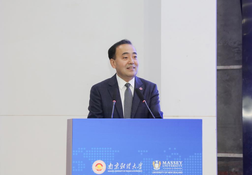 程永波校长致开幕词。他首先代表学校,向研究院的正式成立以及研讨会的如期召开,表示热烈祝贺。程永波校长指出,通过积极引入国外优质教育资源,拓展国际办学广度和深度,培养具有国际化视野、创新型高层次人才,推动科研国际创新合作,是南京财经大学开放融合发展的重要价值追求。新西兰、中国虽然相隔万里,但关系密切,人文交往、文化交融、经济交流源远流长。基于相似的学科专业、特色鲜明的优势以及广阔的合作前景,历经多年密切交流和互动交往,南财大与梅西大学建立起良好的信任根基与合作基础。特别是2021年,双方合作建立了非独立法人中外合作办学机构——梅西学院,谱写了3个里程碑式的“唯一”:南财大获教育部批准的“唯一”一个中外合作办学机构,梅西大学在中国获教育部批准的“唯一”一个中外合作办学机构,新西兰高校在江苏省获教育部批准的“唯一”一个中外合作办学机构。