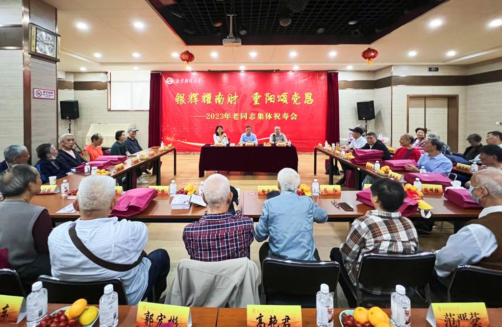 秋风徐徐,丹桂含香,九九重阳,橘红橙黄。10月19日下午,离退休党工委、离退休工作处在福建路校区老同志活动中心举办“银辉耀南财 重阳颂党恩”老同志集体生日会,为70、80、90岁老同志们过生日,并为90岁以上老同志祝寿。党委常委、副校长黄步龙到会祝贺并讲话,离退休党工委书记杨玉中,老寿星代表等40余人参加生日会。生日会由离退休工作处处长唐习华主持。