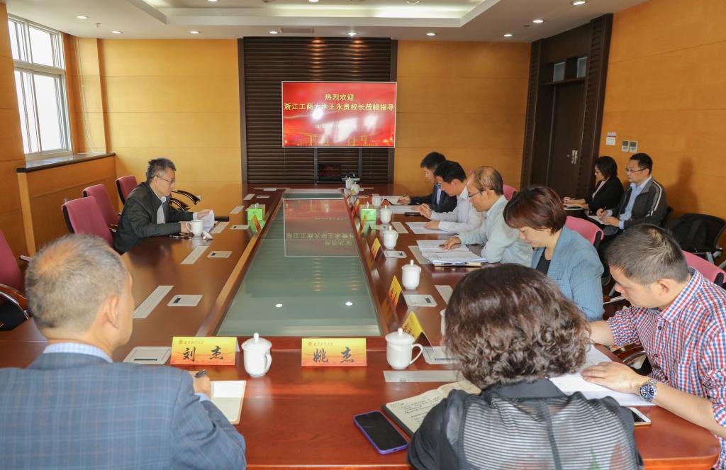 王永贵校长对我校的热情接待表示诚挚的谢意。王永贵校长介绍了浙江工商大学的基本概况、办学理念及近年来改革发展取得的积极成效。王永贵校长表示,一直以来,南京财经大学有着良好的办学声誉和办学特色。希望未来全面加强两校在学科建设、人才培养、师资队伍建设等方面的交流与合作,推动校际资源及平台共享,共同谱写两校共赢发展新篇章。