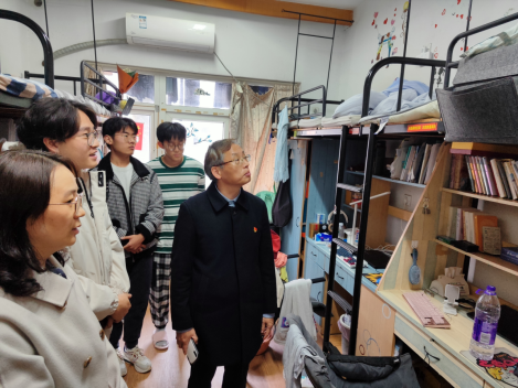 11月20日下午,党委常委、副校长、财政与税务学院本科生第一党支部政治辅导员黄步龙走访慰问结对宿舍学生,并在中苑“一站式”学生社区“初心小站”党建联盟工作站为学生党员讲授党课。财政与税务学院党委书记陈苏、院长杨继军、党委副书记王翔陪同走访。