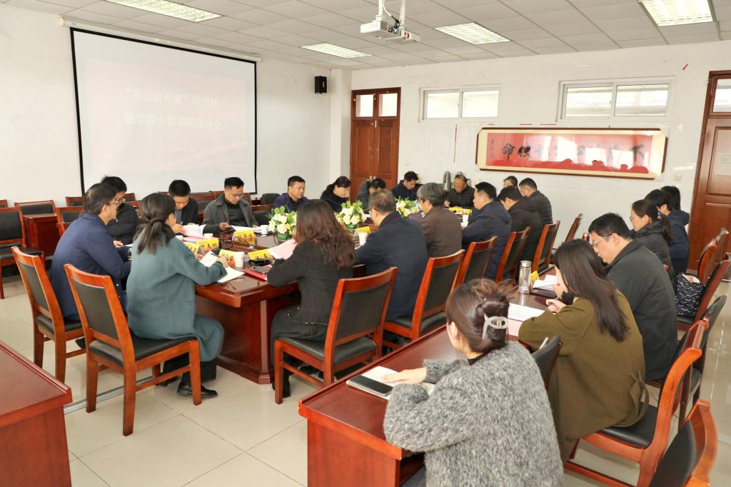 会上,胡宜奎院长从学院发展概况、学科建设现状、面临的困难和挑战、改进的思路和举措等方面进行了工作汇报。黄建国书记汇报了法学院在强化党建引领等方面的工作举措。刘英华副书记、蔡养军副院长、陈红梅副院长、社会工作系系主任许芸分别从学生工作、教学工作、科研工作、社会工作专业建设等方面发言。与会职能部门负责人结合本部门职责,分别就法学院优化师资队伍结构、深化内涵建设、健全工作机制等方面提出对策建议。