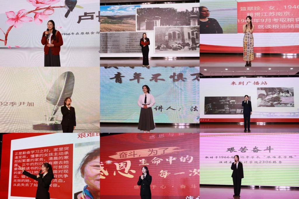 活动共有近60名同学报名。经过初赛,9名选手来到了决赛舞台,为在场观众带来了一场精彩的校史盛宴。选手们深挖校史文化底蕴,取材自老校友、老教职工们的动人事例,用铿锵有力的演讲,解读了学校与祖国命运紧密相连的历史渊源,展示了对学校事业的无限热爱和追求。