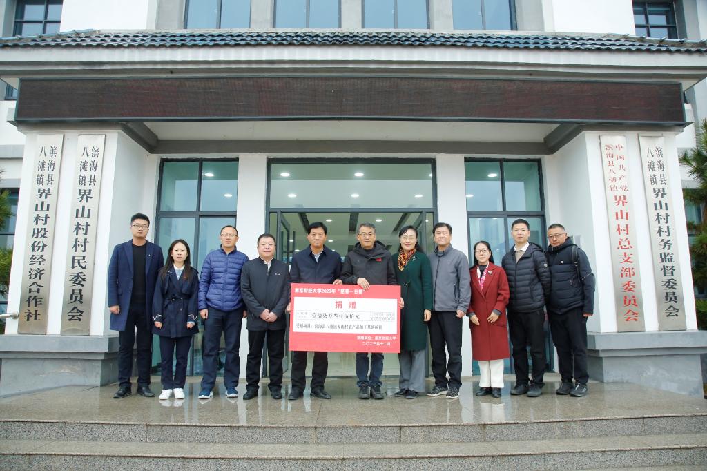 李群副书记代表学校向界山村捐赠了校工会组织的2023年“慈善一日捐”善款17.35万元,资助滨海县八滩镇“界山村农产品加工基地”项目,促进产业兴旺,助力乡村振兴。