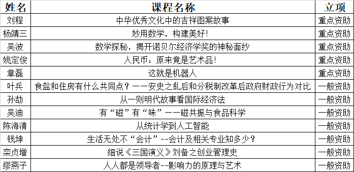 来自各学院的12位老师以国际经济法、人人都是领导者、吉祥图案故事、生活无处不“会计”、机器人、从统计学到人工智能、数学探秘、数学建模、食盐和住房的共同点、创业管理、磁共振与食品科学、人民币的艺术等为主题,进行了精彩答辩,课程兼具趣味性与理论性、专业性与普及性。
