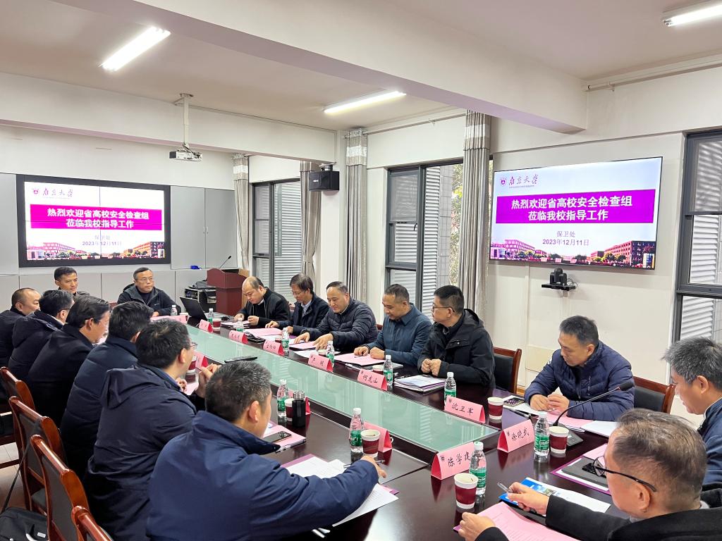 现场检查前,12月11日下午,检查组在南京大学召开集中报告会,我校保卫处处长刘伟华从安全工作基本概况、主要做法、工作成效、存在问题、改进措施五个方面向检查组详细汇报了我校安全工作情况。