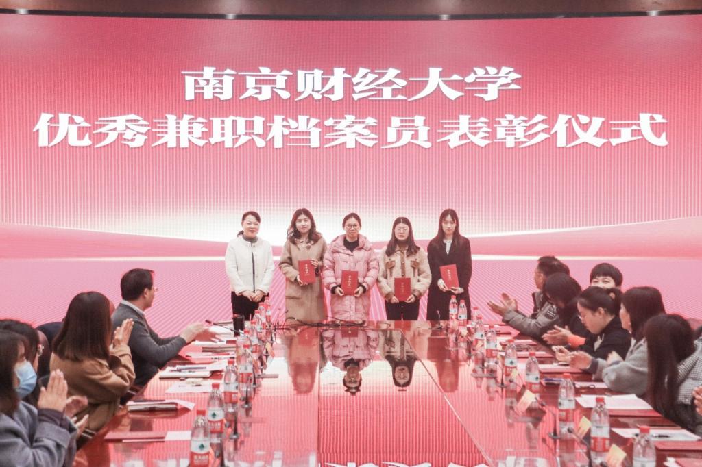 第一阶段会议由档案馆馆长倪明主持。档案馆副馆长安艳杰通报了学校各单位2022年度归档情况和2023年度档案工作开展情况。倪明馆长宣读了《关于表彰南京财经大学2023年度“优秀兼职档案员”的决定》。李煜副校长、倪明馆长、安艳杰副馆长分别为“优秀兼职档案员”颁发一、二、三等奖。