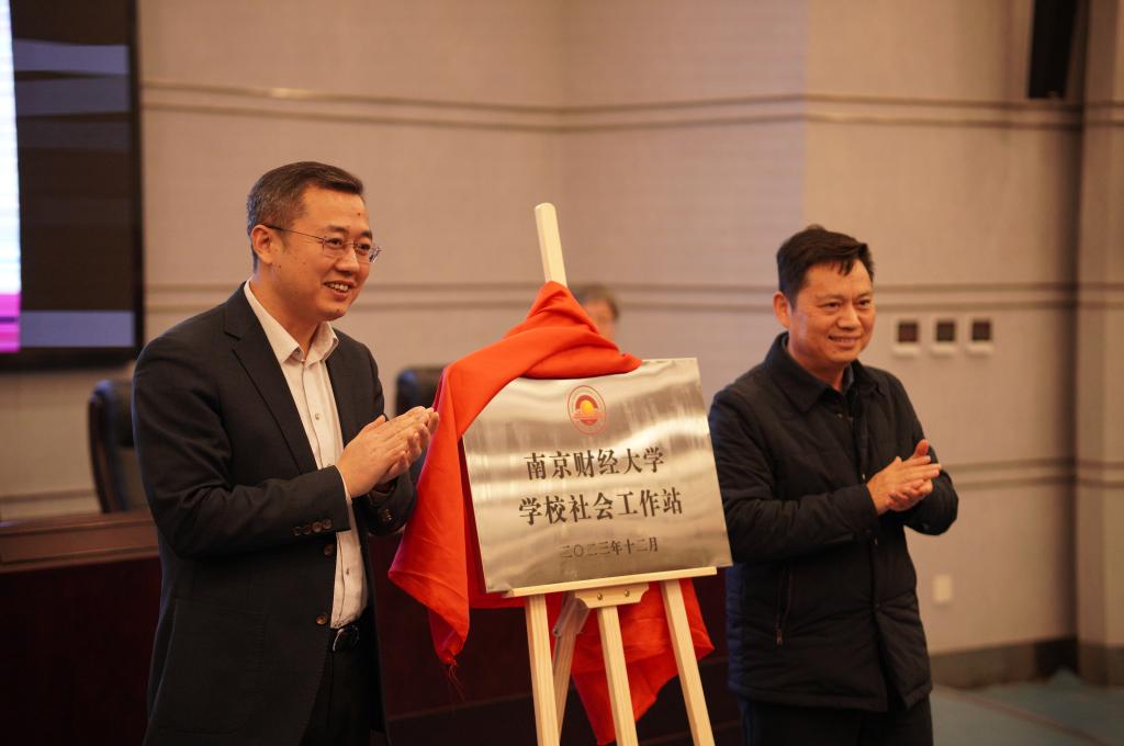 12月14日下午,我校在仙林校区行政楼二楼报告厅举行“学校社会工作站”揭牌仪式。党委常委、副校长赵国栋,江苏省委党校社会和文化教研部教授黄菡,江苏省社会工作协会副会长李居河,江苏省心理协会大学生心理专业委员会主任委员费俊峰,南京市慈善总会副秘书长全晓,南京市同心未成年保护和发展中心常务副理事长黄琼花出席仪式。多家专业社会工作机构负责人,我校法学院党委书记黄建国,对外联络处处长陆明峰,心理健康教育中心主任、党委学生工作部副部长赵亮,党委宣传部副部长龚莉红以及社工系全体师生等参加仪式。揭牌仪式由党委学生工作部部长、学生处处长韩力争主持。