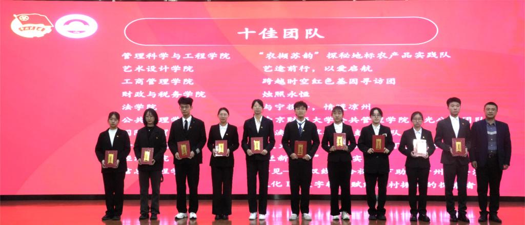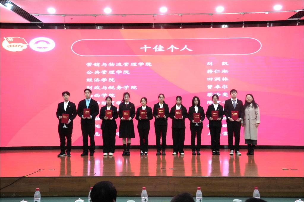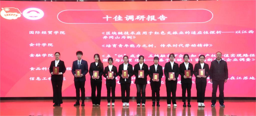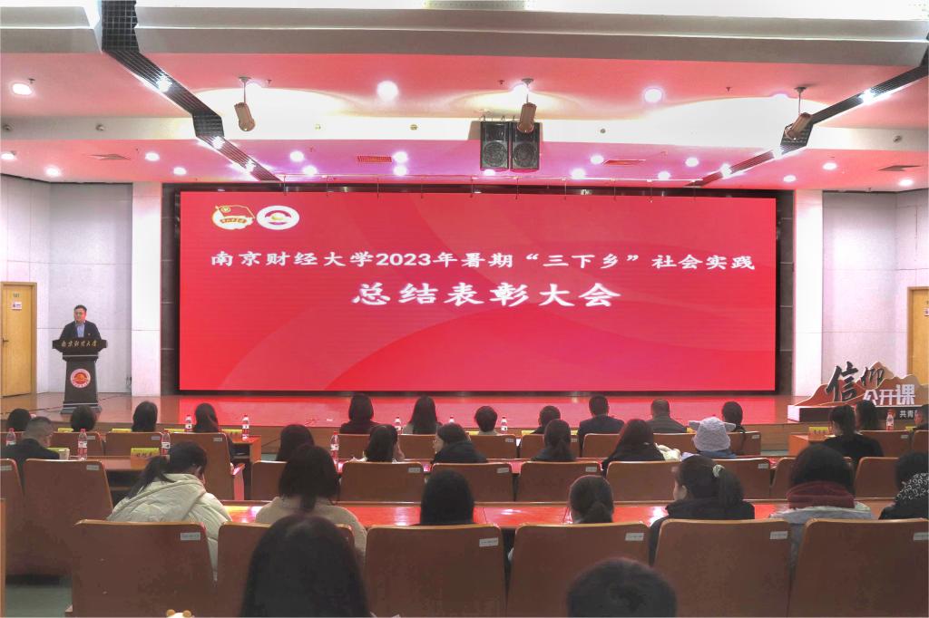 韩力争部长宣读《关于表彰南京财经大学2023年暑期文化科技卫生“三下乡”社会实践活动先进集体和先进个人的决定》。财政与税务学院、国际经贸学院、工商管理学院、艺术设计学院、管理科学与工程学院获评“先进单位”。经济学院、金融学院、国际经贸学院、会计学院、营销与物流管理学院、应用数学学院获“宣传成果奖”。艺术设计学院“艺途前行,以爱启航”等10支社会实践团队获评“十佳团队”。国际经贸学院陈雪子等10名同学获评“十佳个人”。管理科学与工程学院《数字赋能江苏乡村旅游高质量发展的路径与机制研究》等10个调研报告获评“十佳调研报告”。工商管理学院郭洋洋等10名同学获评“十佳通讯员”。