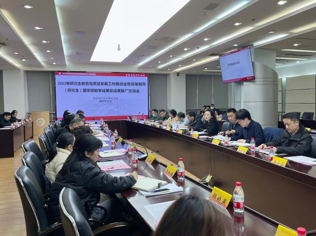 12月14日上午,我校在仙林校区行政楼16楼会议室召开2023年研究生教育高质量发展工作推进会暨高等教育(研究生)国家级教学成果奖成果推广交流会。党委常委、副校长姚文韵出席会议,研究生院院长殷华方、学位办主任杨林、各研究生培养单位负责人及教师代表等参加会议。会议由研究生院副院长杜修立主持。