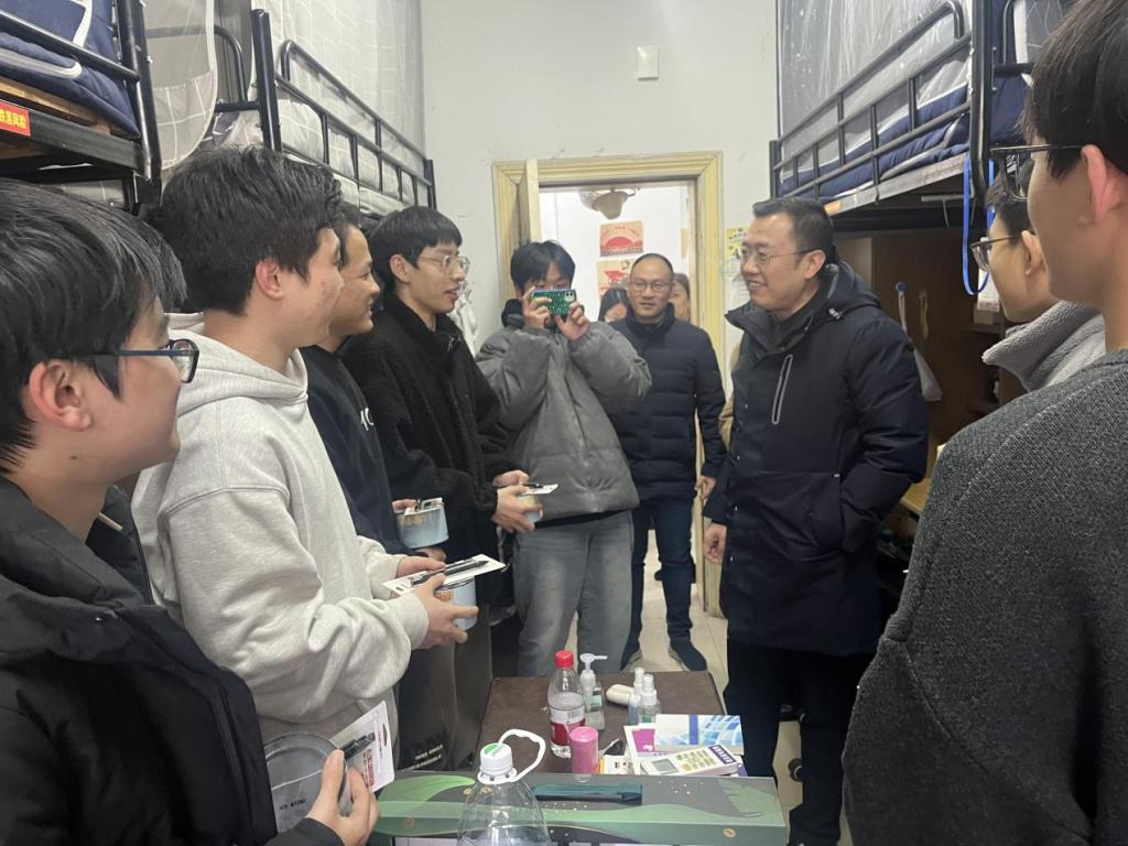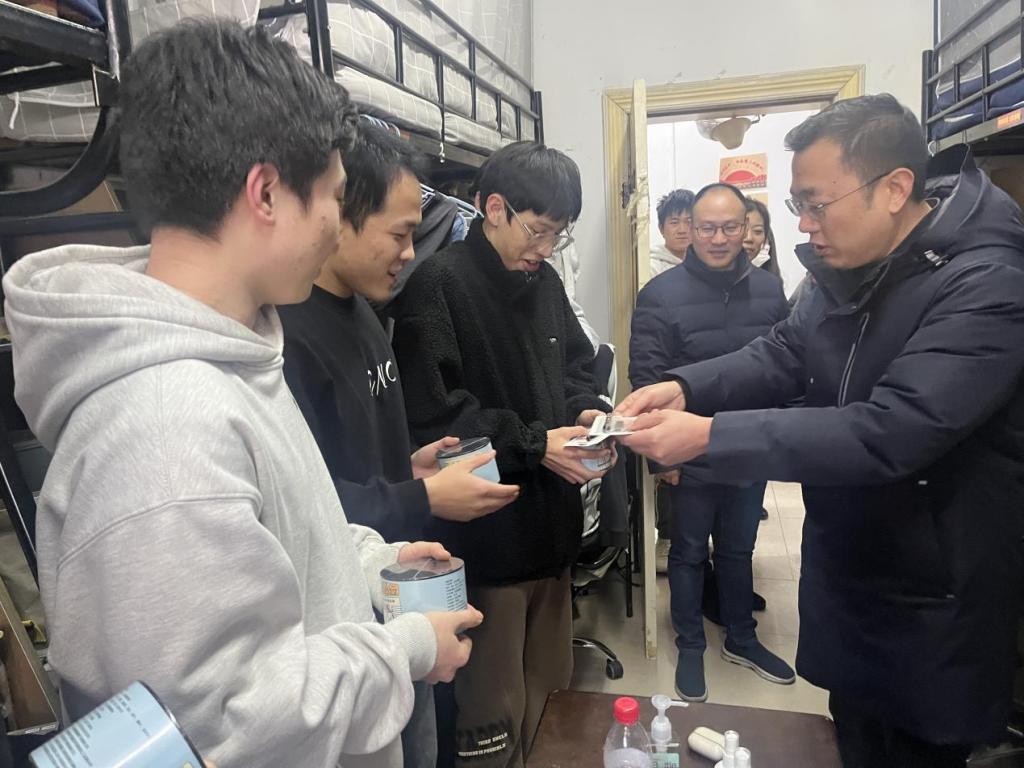 2024年全国硕士研究生招生考试在即,为增强考研学子的备考信心,传递温暖与力量,12月22日冬至当天,党委常委、副校长赵国栋一行前往仙林校区15号宿管站看望慰问考研学子,表达学校的祝福和关心。心理健康教育中心主任、党委学生工作部副部长赵亮,党委学生工作部副部长袁怡琨,相关学院党委副书记陪同慰问。