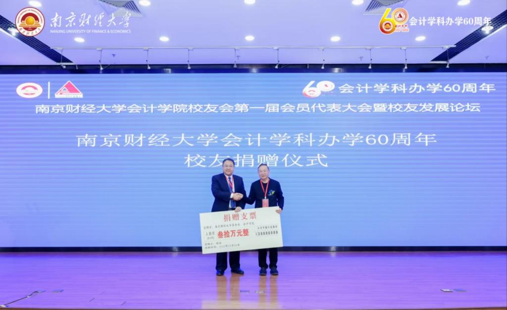 校友捐赠仪式中,扬州校友会会长、江苏万杨物业管理服务集团有限公司董事长程岗校友向会计学院捐赠30万元,表达了对母校培育的感恩之情,对学院校友会成立表示衷心祝贺。