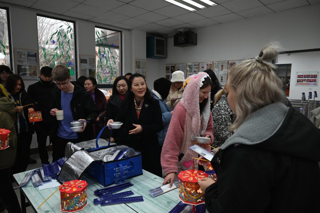 党委常委、副校长姚文韵向外国留学生分发元宵