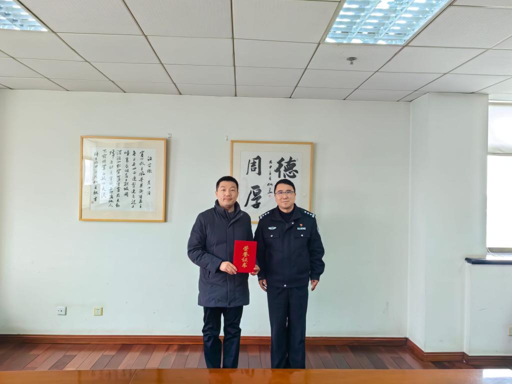 张研副支队长向先进集体和先进个人颁发奖牌和证书,对我校2023年度安全保卫工作给予高度肯定,向学校党委、行政对安全工作的关心支持表示感谢,希望进一步加强警校合作,更高水平做好校园安全保卫工作。