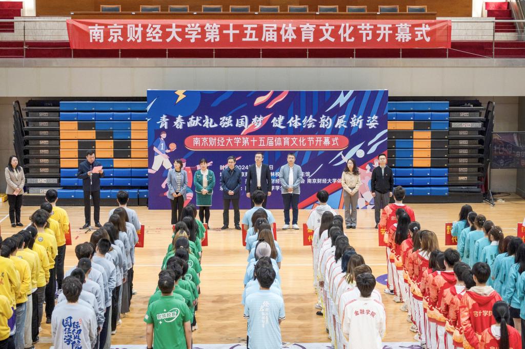 4月10日,由校团委、体育部、校学生会联合举办的“青春献礼强国梦 健体绘韵展新姿”第十五届体育文化节开幕式在仙林校区体育馆主馆举行。党委常委、副校长赵国栋出席开幕式,党委宣传部、党委学生工作部、党委研究生工作部、党委保卫部、体育部、校团委相关负责人和各学院运动员代表参加开幕式。开幕式由校团委书记张蔚伟主持。
