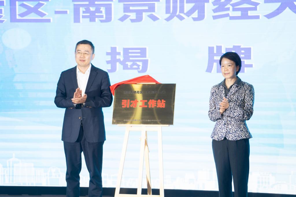 卢静副区长和赵国栋副校长为“南京市栖霞区—南京财经大学”引才工作站揭牌