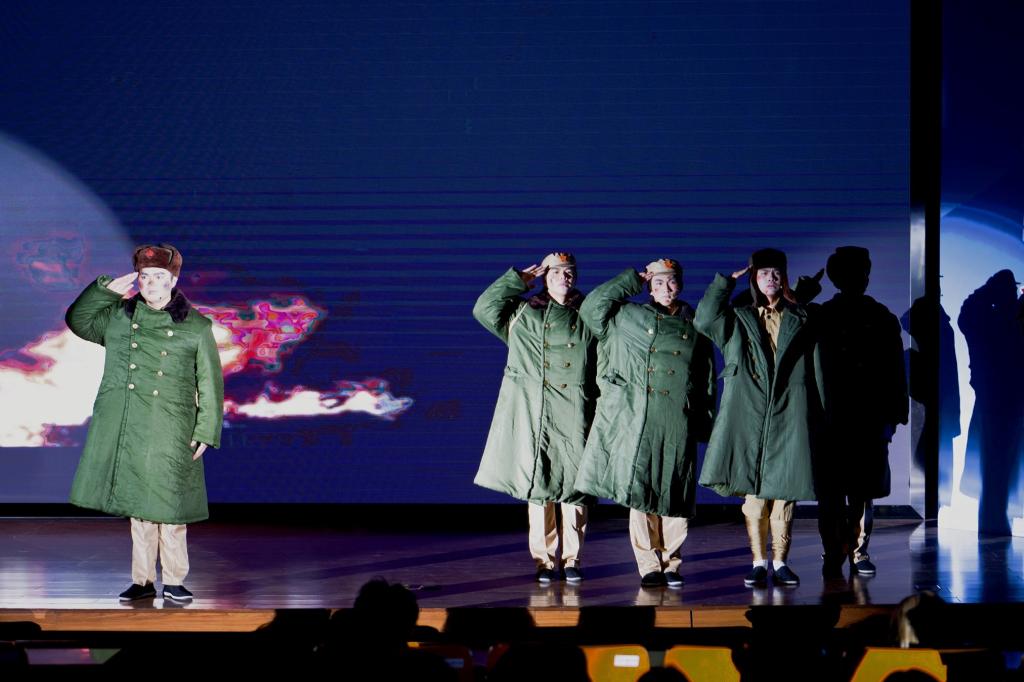 现场,根据我校“挑战杯”红色专项全国特等奖作品《重温革命实践历程 弘扬伟大斗争精神——三大战争亲历者访谈记录》改编的青春思政课“山河已无恙”,通过沉浸式表演,重现那段保家卫国、热血报国的峥嵘岁月,引领当代大学生传承发扬伟大斗争精神,坚定理想信念、传承红色基因,用实际行动谱写“清澈的爱,只为中国”的青春赞歌。